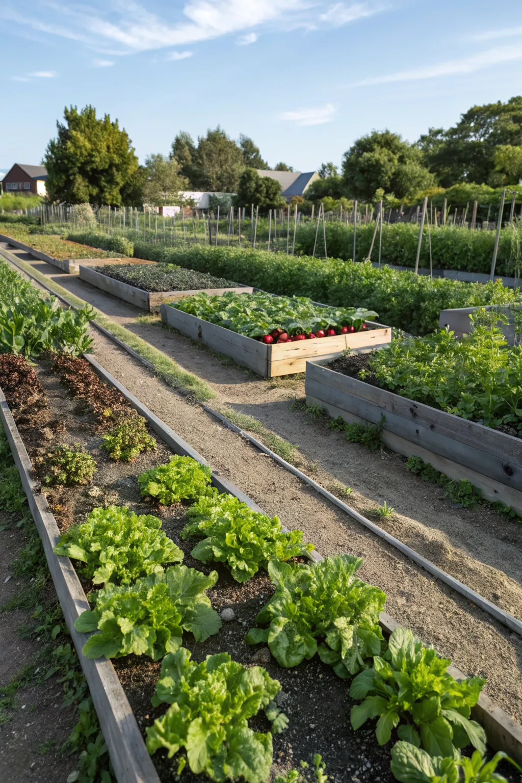 A productive vegetable garden thriving in the well-drained soil near a French drain.