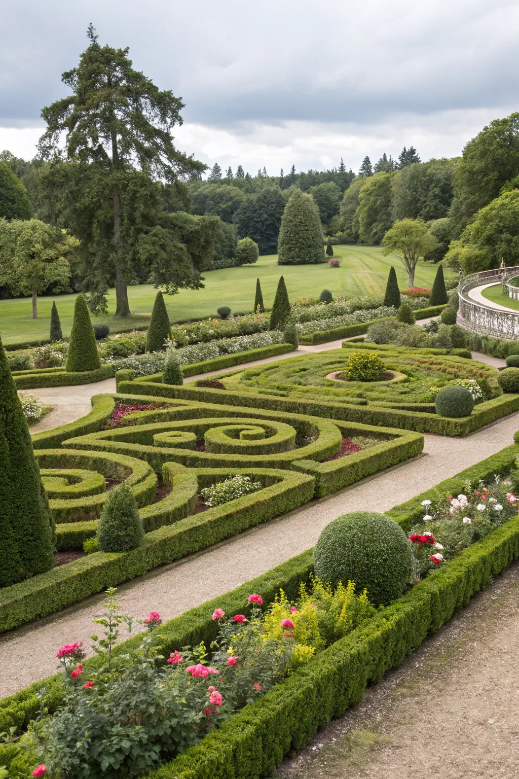 Construct an evergreen parterre to instill a hint of timeless sophistication. My parterre stands as a year-round marvel, lending structure and grace.