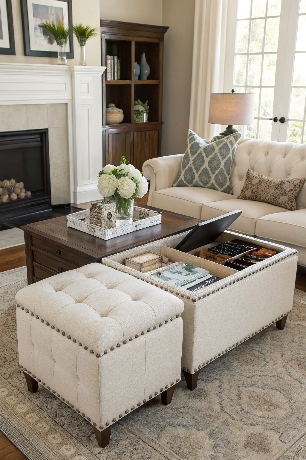 A useful yet fashionable living room featuring furnishings with multiple functions.