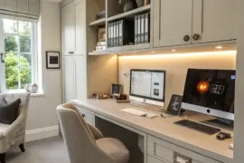 - Wall-Mounted Shelving Units: Get the most out of your office space by installing wall-mounted shelves for extra storage and decor.