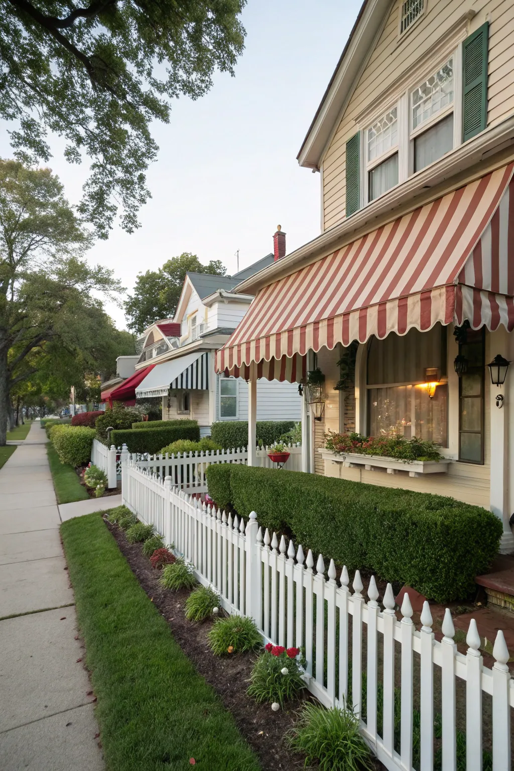 - Durable Striped Awning: Appreciate the durability and flair of these striking striped awnings, ideal for any home exterior.