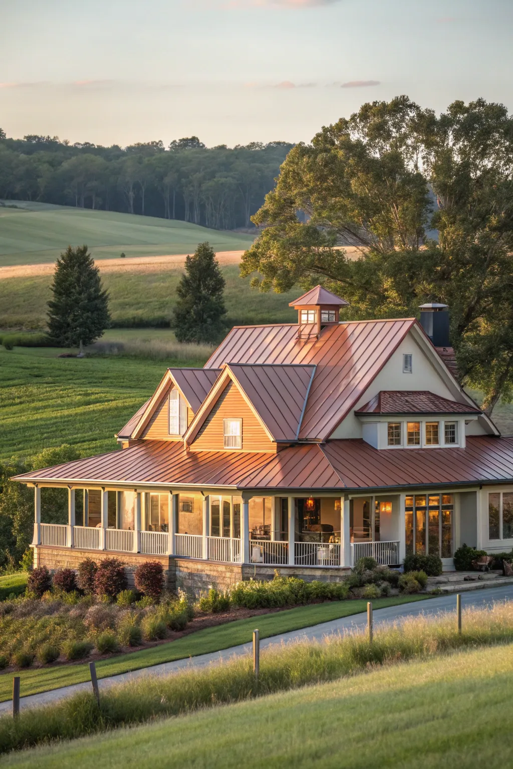 - Burnished Bronze Roofing: Elevate your farmhouse with graceful burnished bronze, developing a gorgeous patina over time.