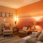Utilize orange to accentuate architectural details, like beams or alcoves. In my experience, this approach enriches the room’s structural elegance and introduces a contemporary edge.