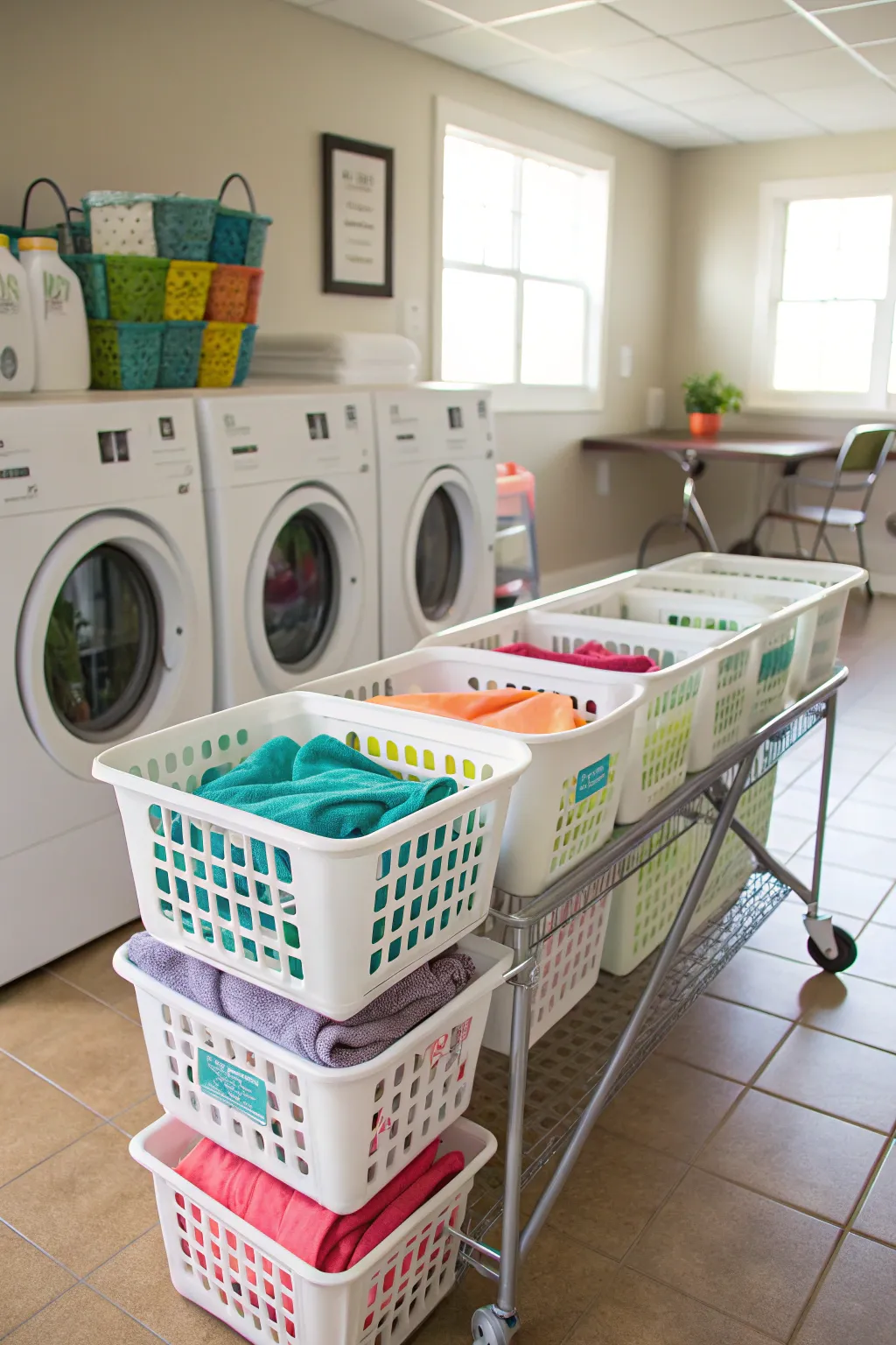 - Rolling Laundry Center: Enhance your laundry process with a rolling sorter to easily sort garments by shade or type.