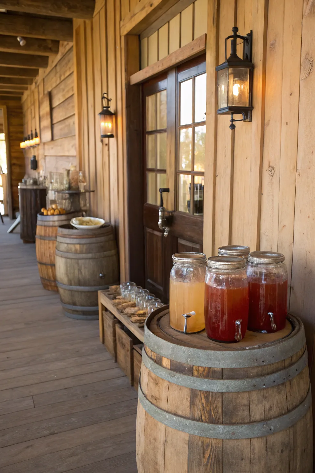 Construct a barroom-inspired quench station with country-style glassware and rustic barrels. I’ve discovered this setup to be both sensible and visually enticing.