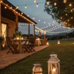 Drape string lights across your patio for a magical evening radiance. They create a warm, inviting atmosphere that encourages lingering late into the night.