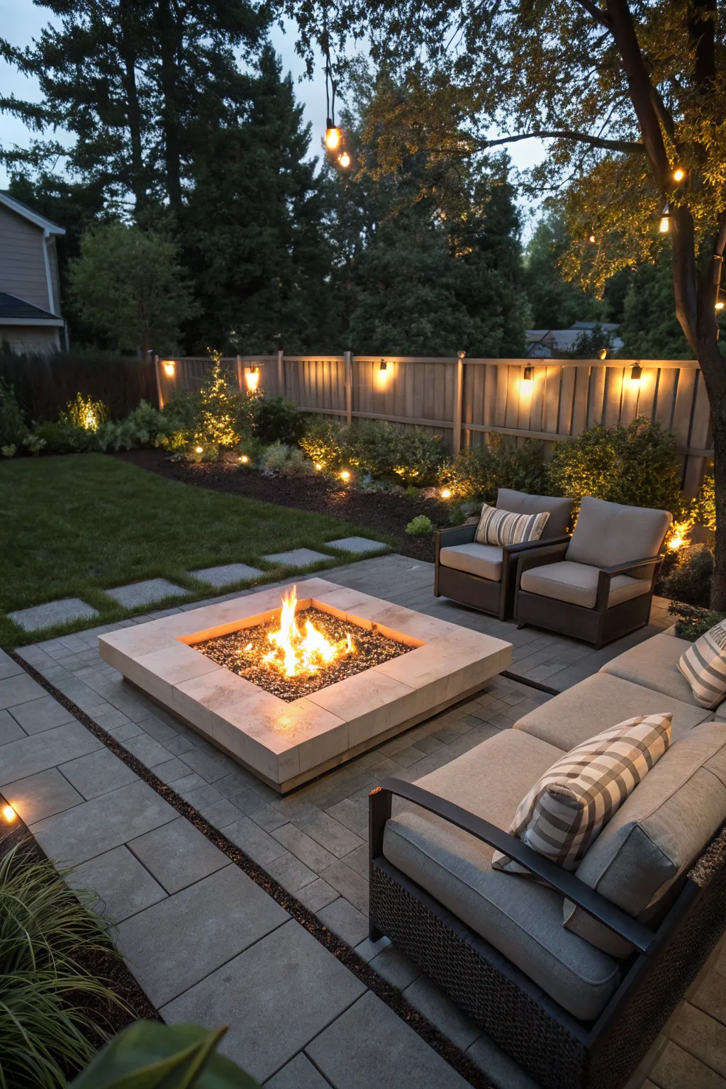 Position a bonfire feature at the core of your patio to establish a cozy, magnetic ambiance. I consistently find pleasure in arranging seating around it in a balanced manner, rendering it an ideal locale for sharing stories beneath the celestial expanse.