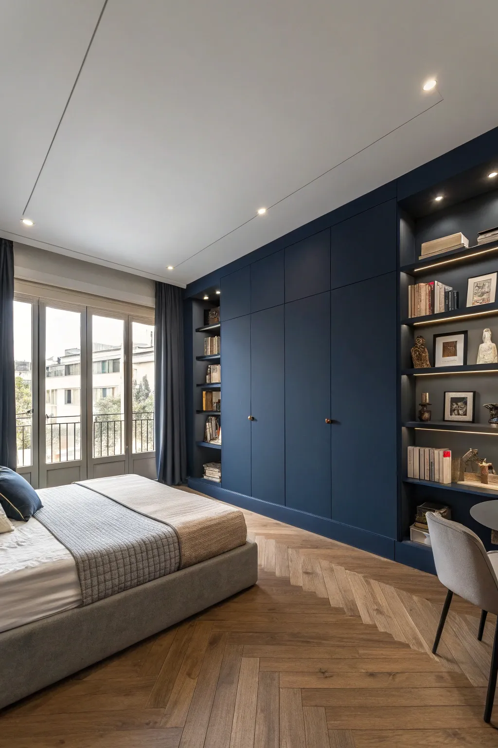 Occasionally, simplicity speaks volumes. Painting your plywood floor in a striking uniform hue can make a dramatic statement. I opted for a profound navy for my bedroom floor, which introduced a lavish and modern element that seamlessly unified the room.
