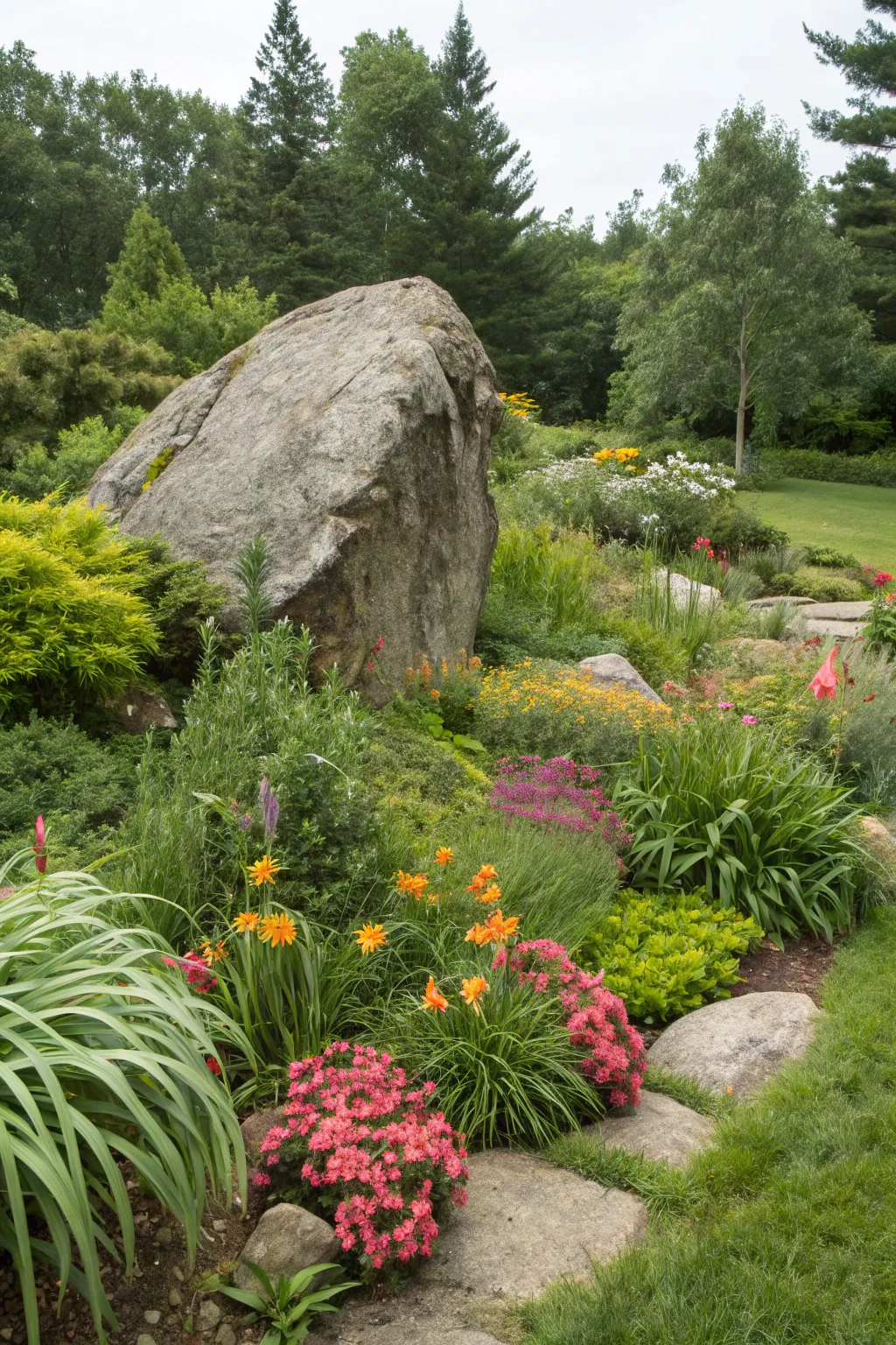 A sizable highlight stone can function as a striking epicenter in your garden. In my blueprints, I frequently cherry-pick singular, textured stones that seize the luminescence and solicit the gaze.