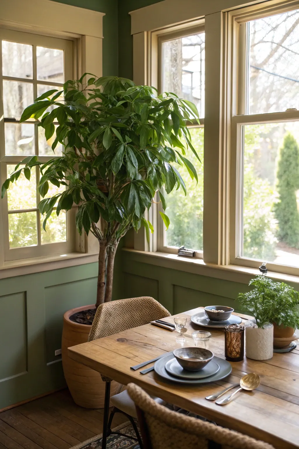 Infuse a sense of freshness through positioning a grand botanical in the dining room corner. It feels akin to bringing a burst of revitalizing air into your abode, echoing the rich greenery I experienced during my explorations in Nepal.