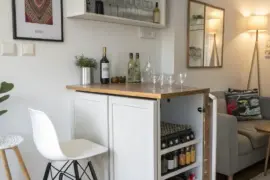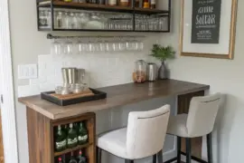 Incorporate a fashionable vintage rack to transform the nook into a miniature bar zone. This establishes a refined touch and guarantees your treasured vintage is invariably within reach.