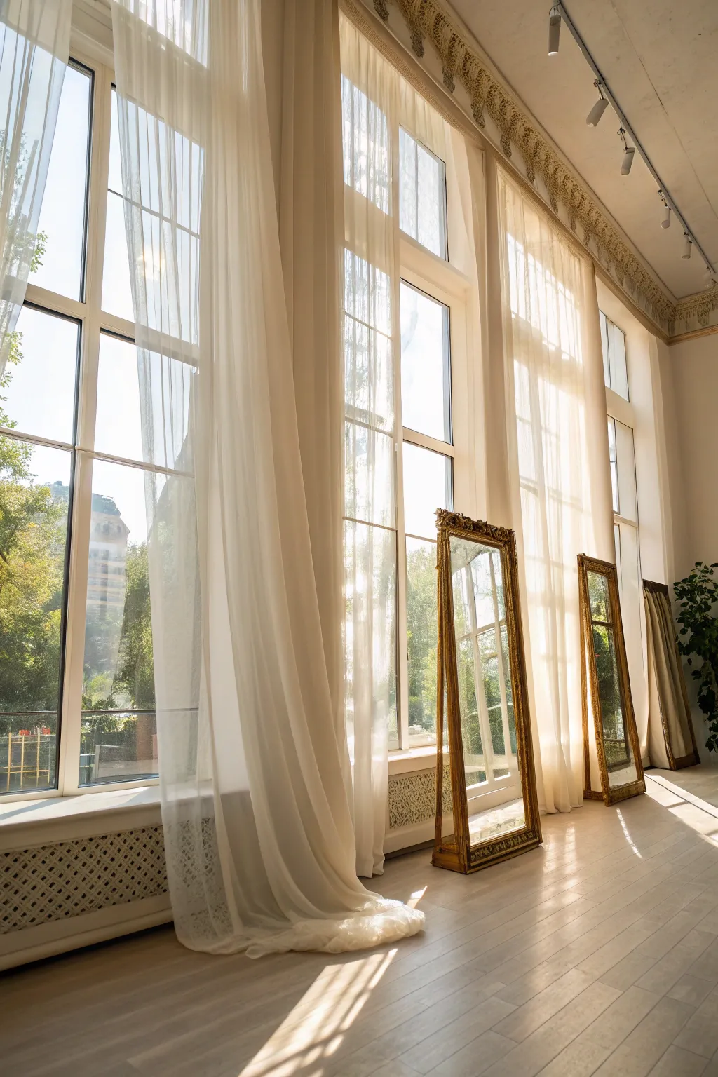 Maximize sunlight using light, airy curtains and carefully placed mirrors. This technique can make any space appear more spacious and radiant.