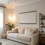 Enhance your living space by integrating art pieces featuring sky-hue tones. This ties in beautifully with your sky-hue drapes and enriches the decor.