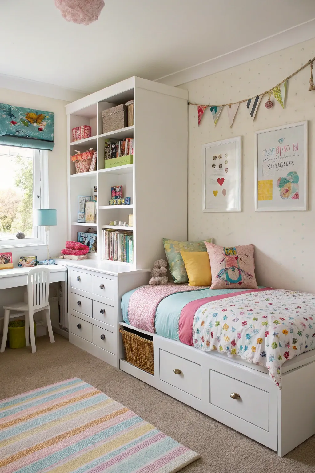Pick furnishings that can be used for multiple things, like a study desk that can also serve as a craft table. This approach increases functionality without making the room feel cramped—a must in smaller spaces.