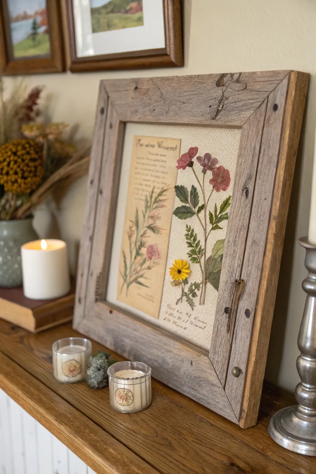 Enhance your aged-wood displays with natural complements such as diminutive succulents or dehydrated blossoms. I’ve observed this to be a delightful means of incorporating vitality and vibrancy into rustic décor.