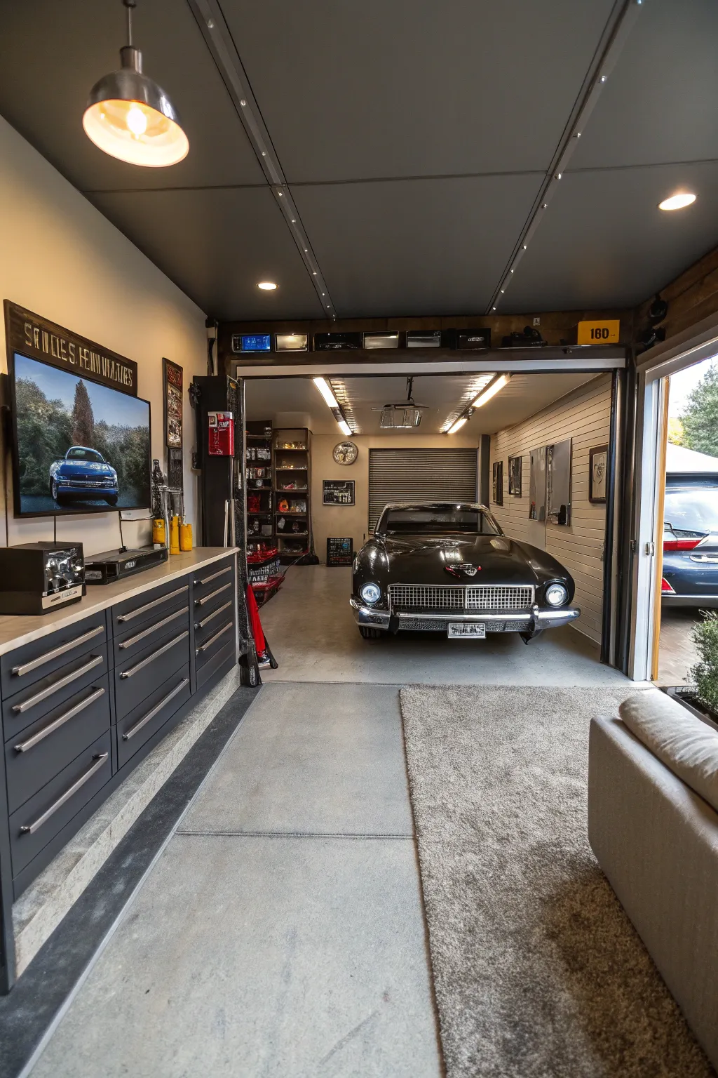 - Subtle LED Garage Lights: Boost visibility and set the mood in your garage with power-saving ambient LED lighting.