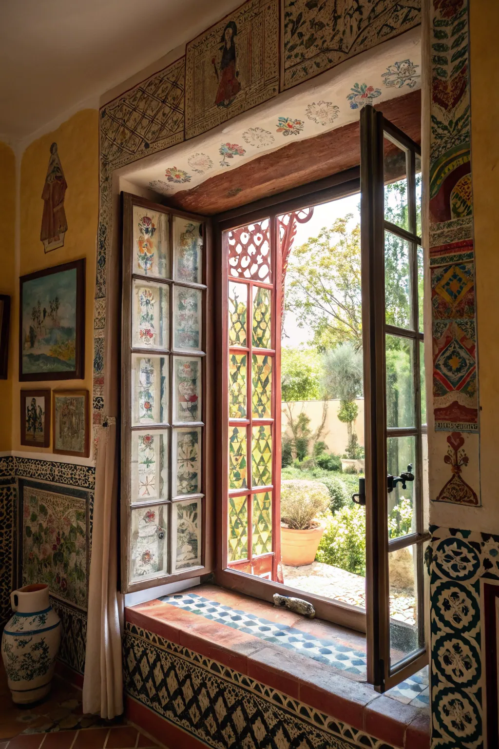 - Ornamental Window Overlay with Spirited Motifs: Freshen up your windows with vibrant motif overlays for a whimsical element in any space.