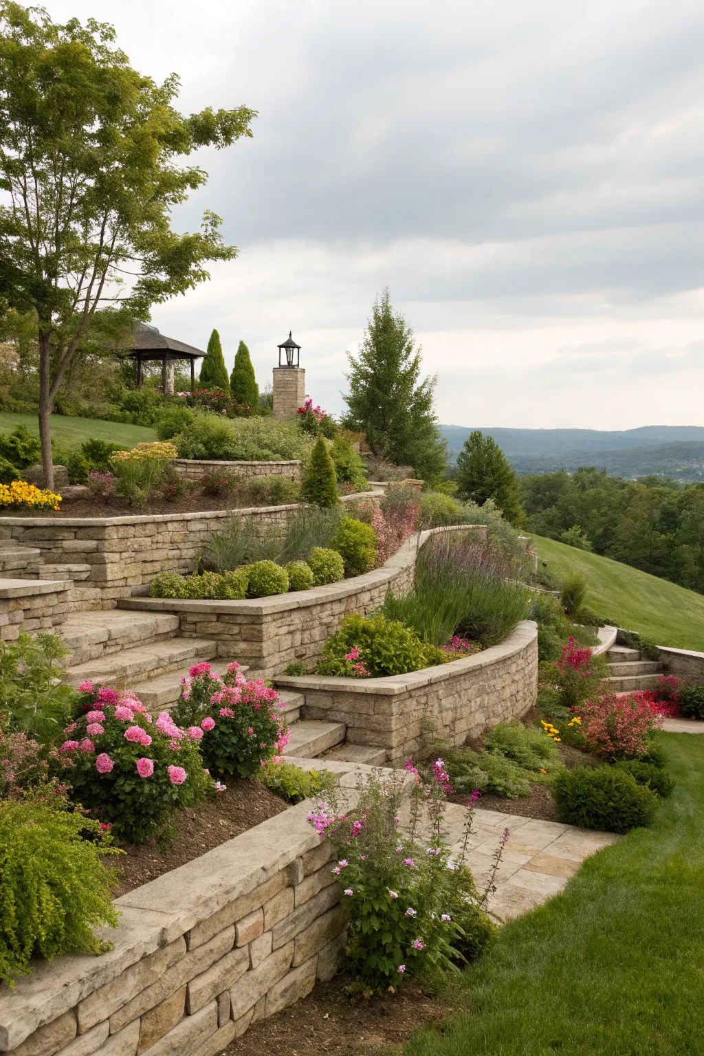 Implementing terraces on your sloping land can morph it into a tiered garden paradise. This technique not only introduces visual appeal but also aids in managing water flow efficiently.
