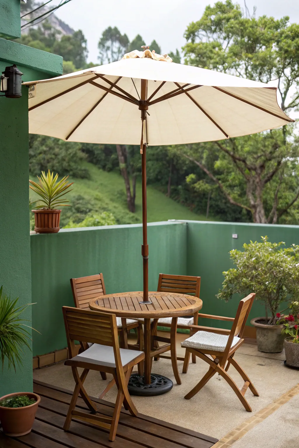 Employ a retractable umbrella for adaptable shade solutions. My small lanai remains cool and cozy with an adjustable umbrella on sun-drenched days.