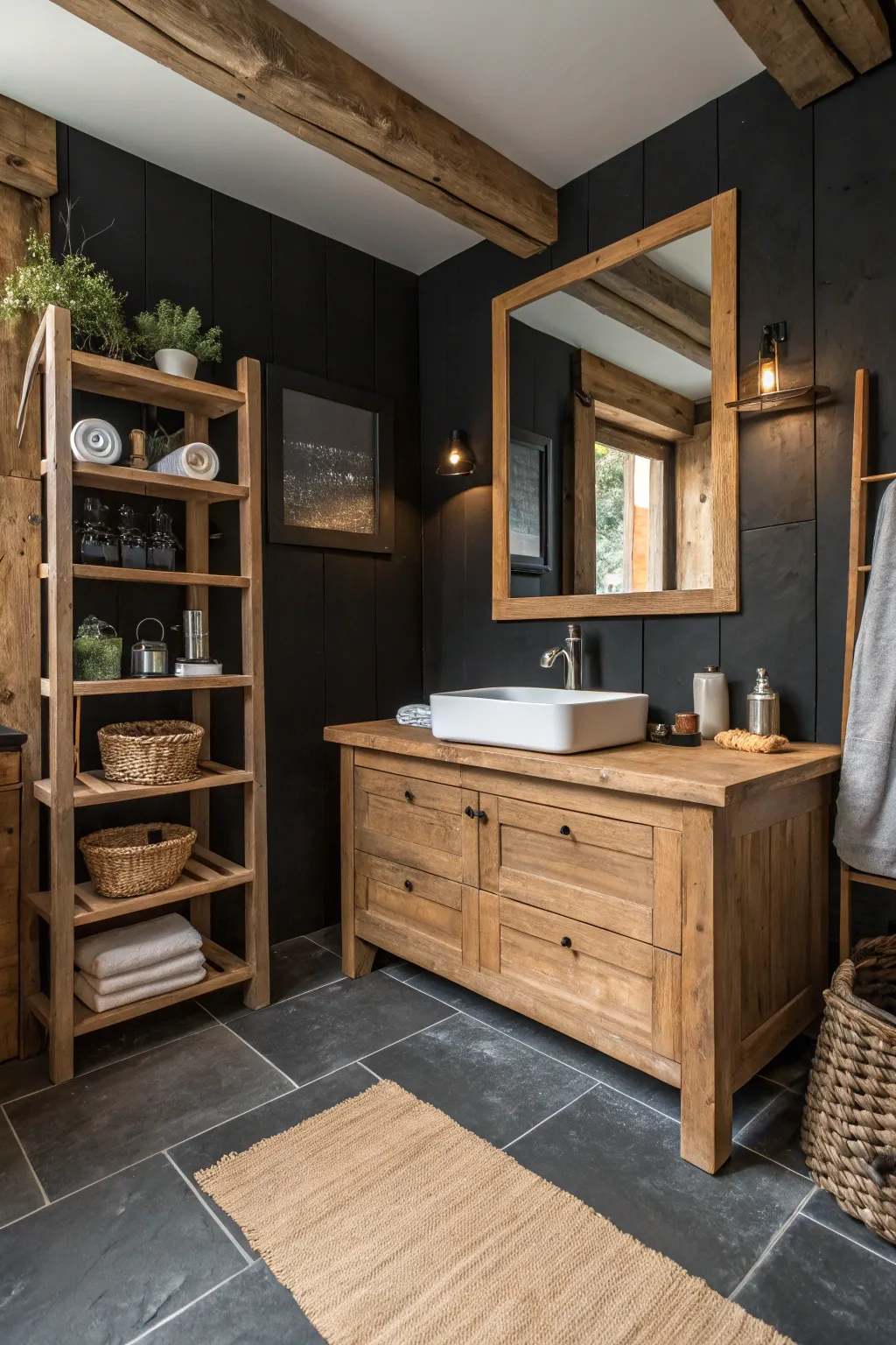 - Sleek Black Bathroom Tap: Revamp your sink with a sleek black tap for a bold, modern rustic statement.