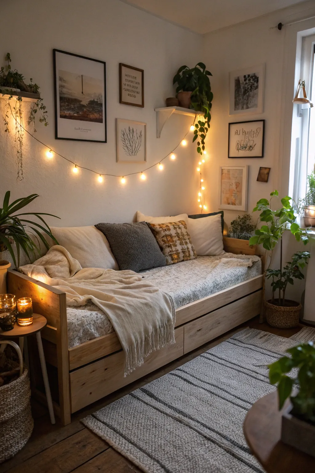 - Warm Glow Strings: Add cozy lighting to your daybed area with these elegant warm glow strings.