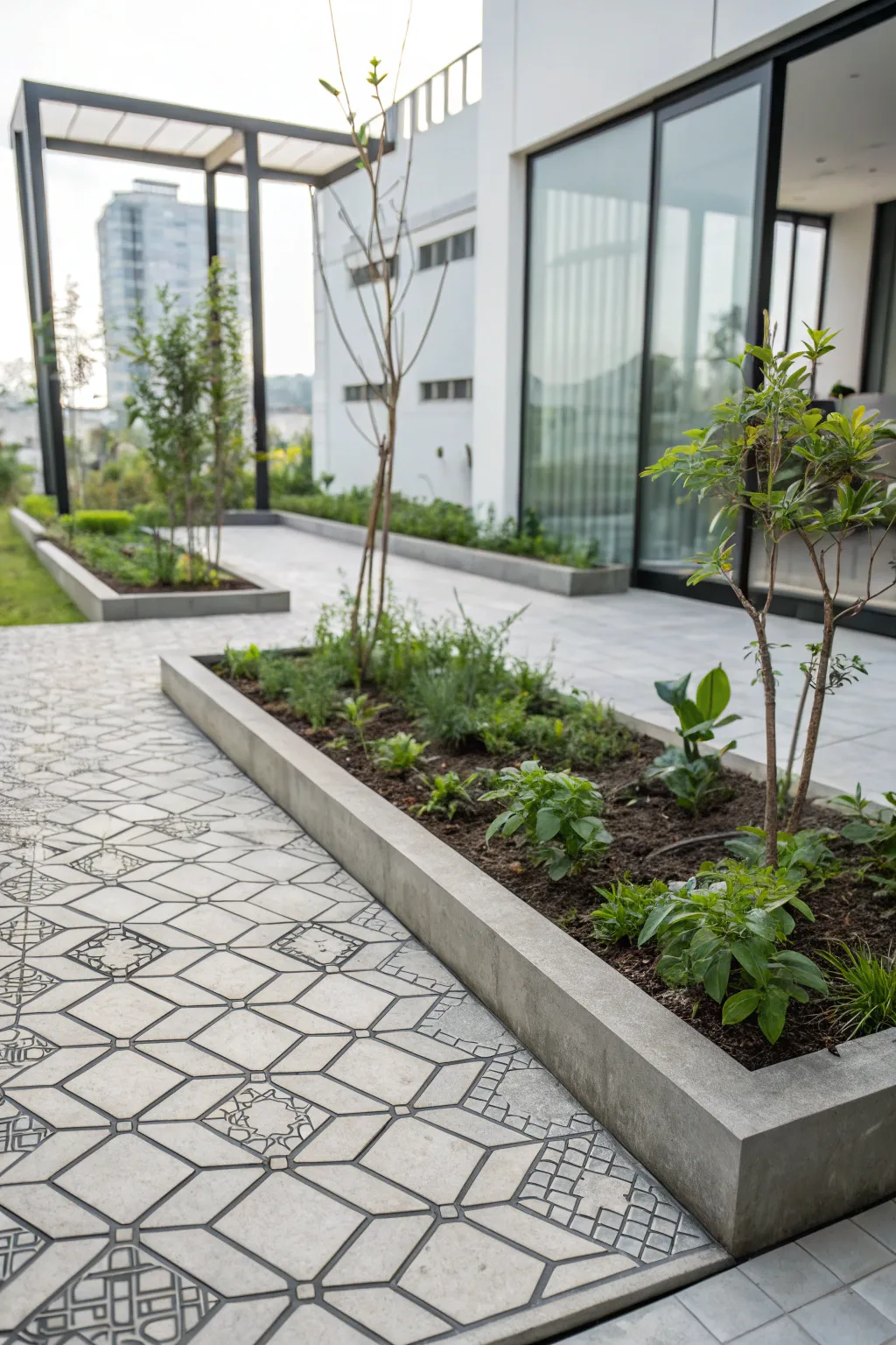 • Modern Path Lights: Illuminate your space with minimalist LED lights, enhancing the modern aesthetic of your border.