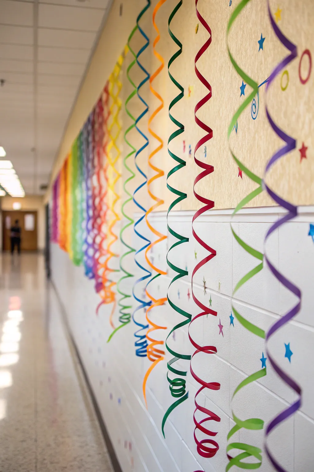 A vibrant rainbow display of streamers that transforms any wall into a captivating focal point.