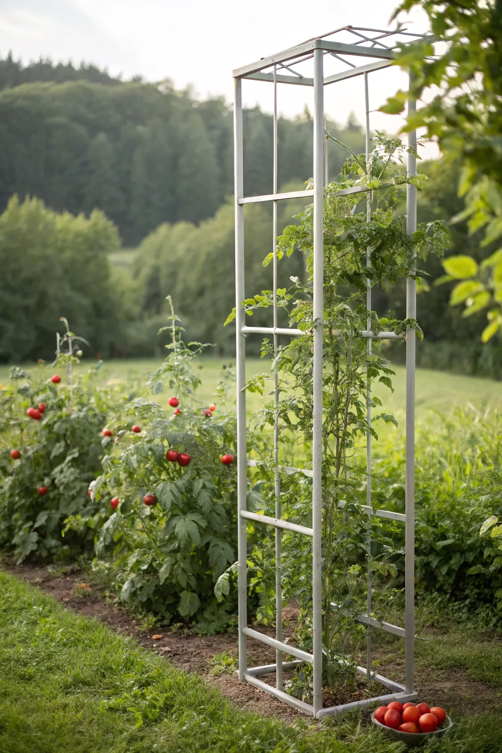 A livestock panel climbing frame is an amazing option for those with a bit of extra room. These panels are simple to set up and provide outstanding support, allowing your tomatoes to grow lush and full.