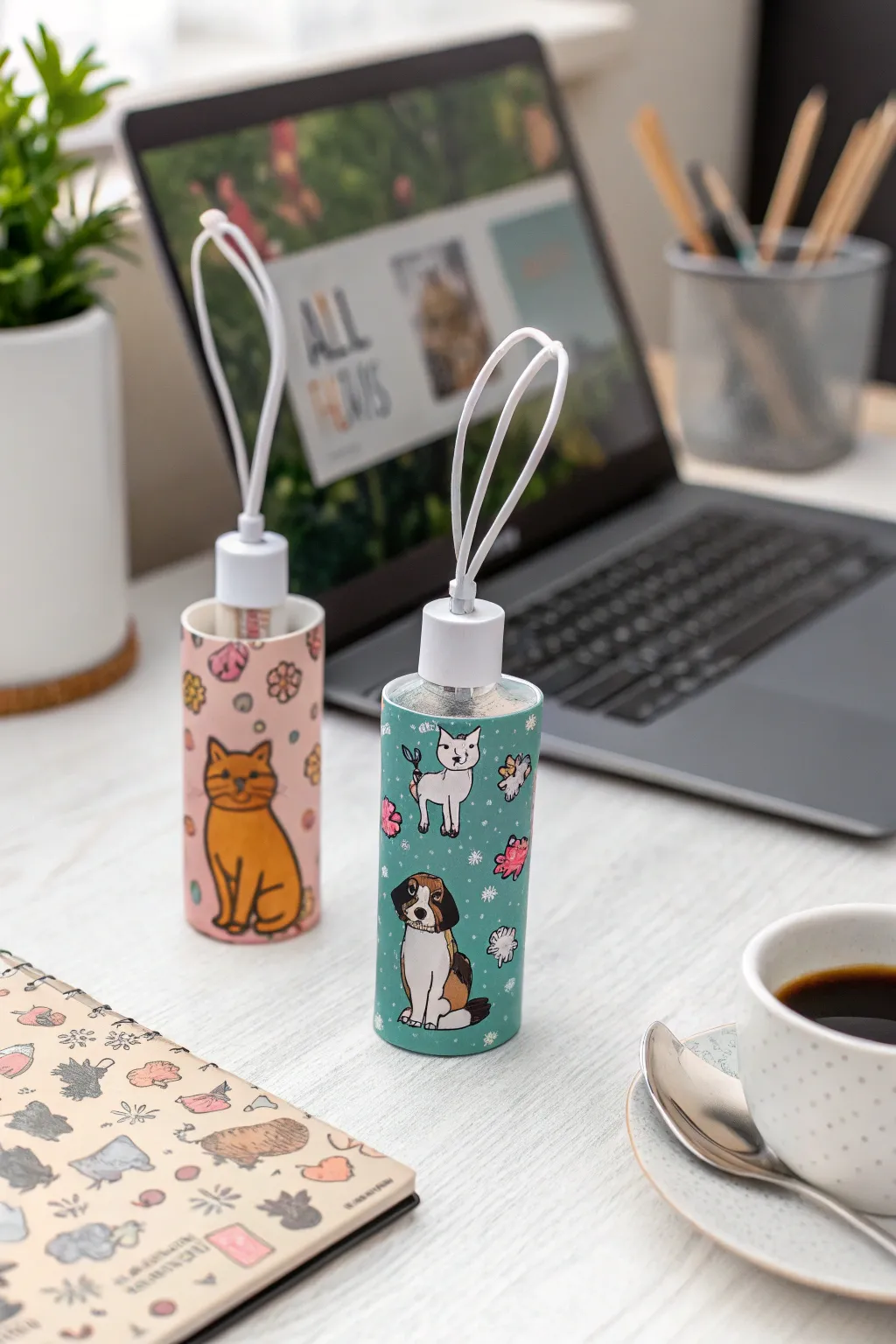 Transform vintage ads into quirky air fresheners. I adore the nostalgic feel they bring to my kitchen, reminiscent of a bygone era.
