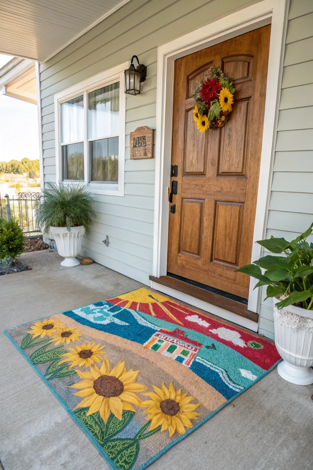 - Sun-Kissed Welcome Mat: Extend a sunny greeting with a sunflower-themed mat, injecting color and personality into your porch.