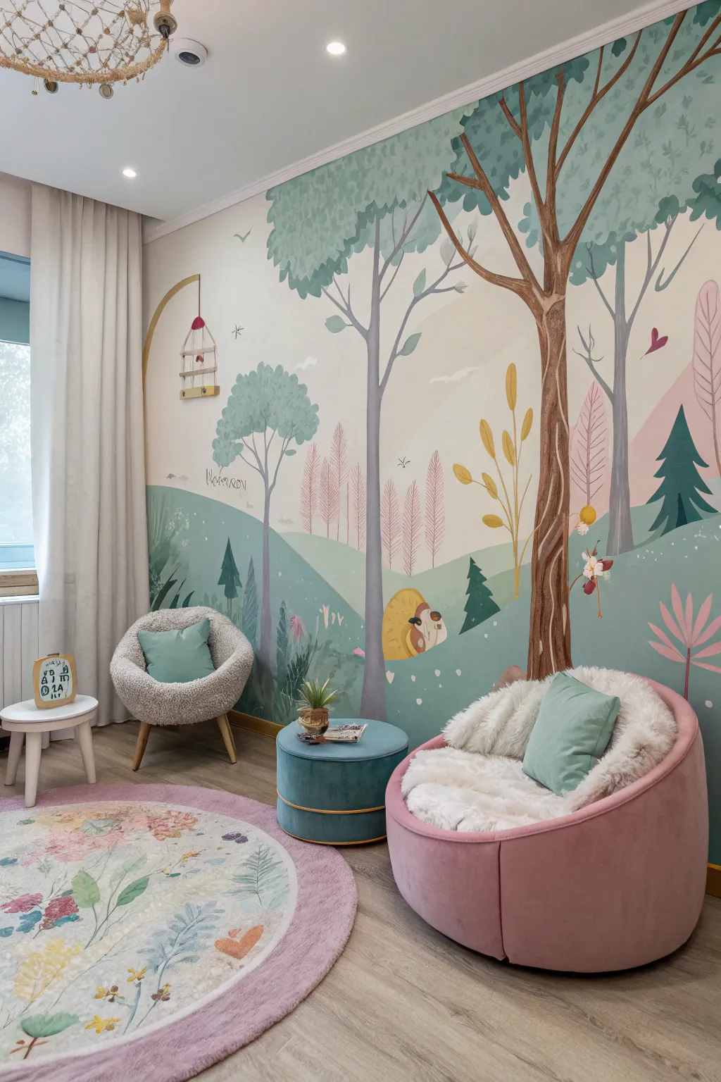 A dream-like forest with unreal colors can transform any setting into an enchanting woodland retreat. I especially adore this for youngsters’ spaces.