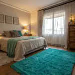 For a modern aesthetic, couple teal with minimalist furnishings and ornaments. This method keeps the room feeling ample and airy while adding a jolt of vibrant shade.