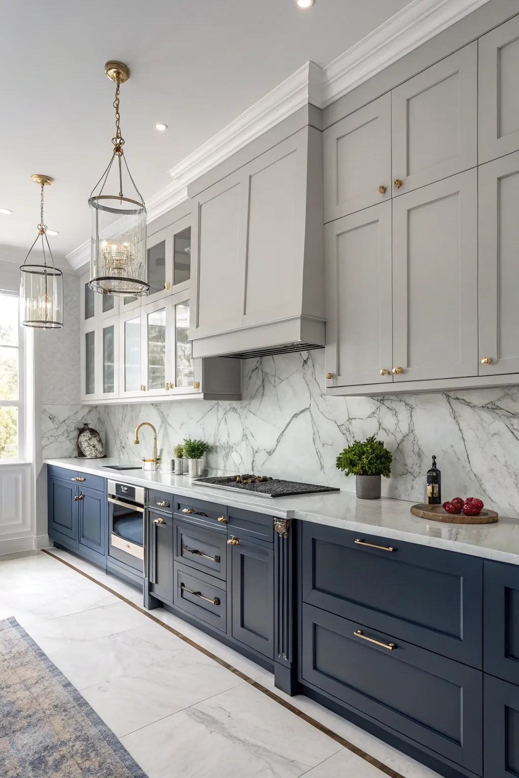 Combine elegant gray uppers with deep sea blue lowers for a timeless and sophisticated look. This pairing is perfect for those who desire a polished, yet understated kitchen.