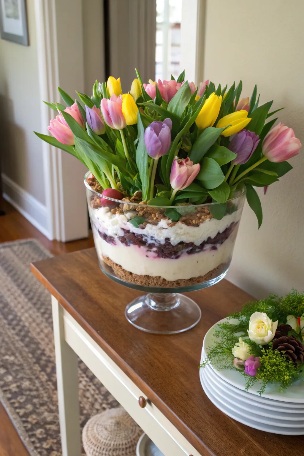 Honor Easter through a trifle bowl packed with fancy eggs and springtime flowers. It’s a delightful and festive method to welcome the period.