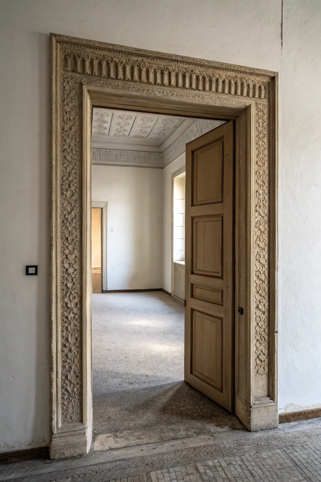• Ornate Shadowy Trim: Transform door perimeters with chic ornate shadowy trim for a refined panache.