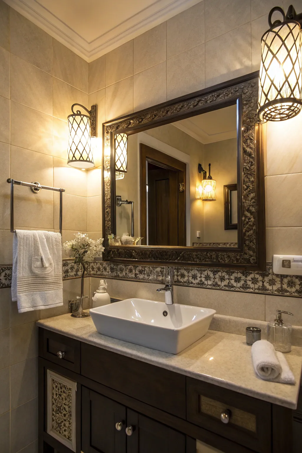 Extending the centerpiece design into the backsplash generates a seamless, refined look. This technique aligns with my strategic approach to designing cohesive designs.