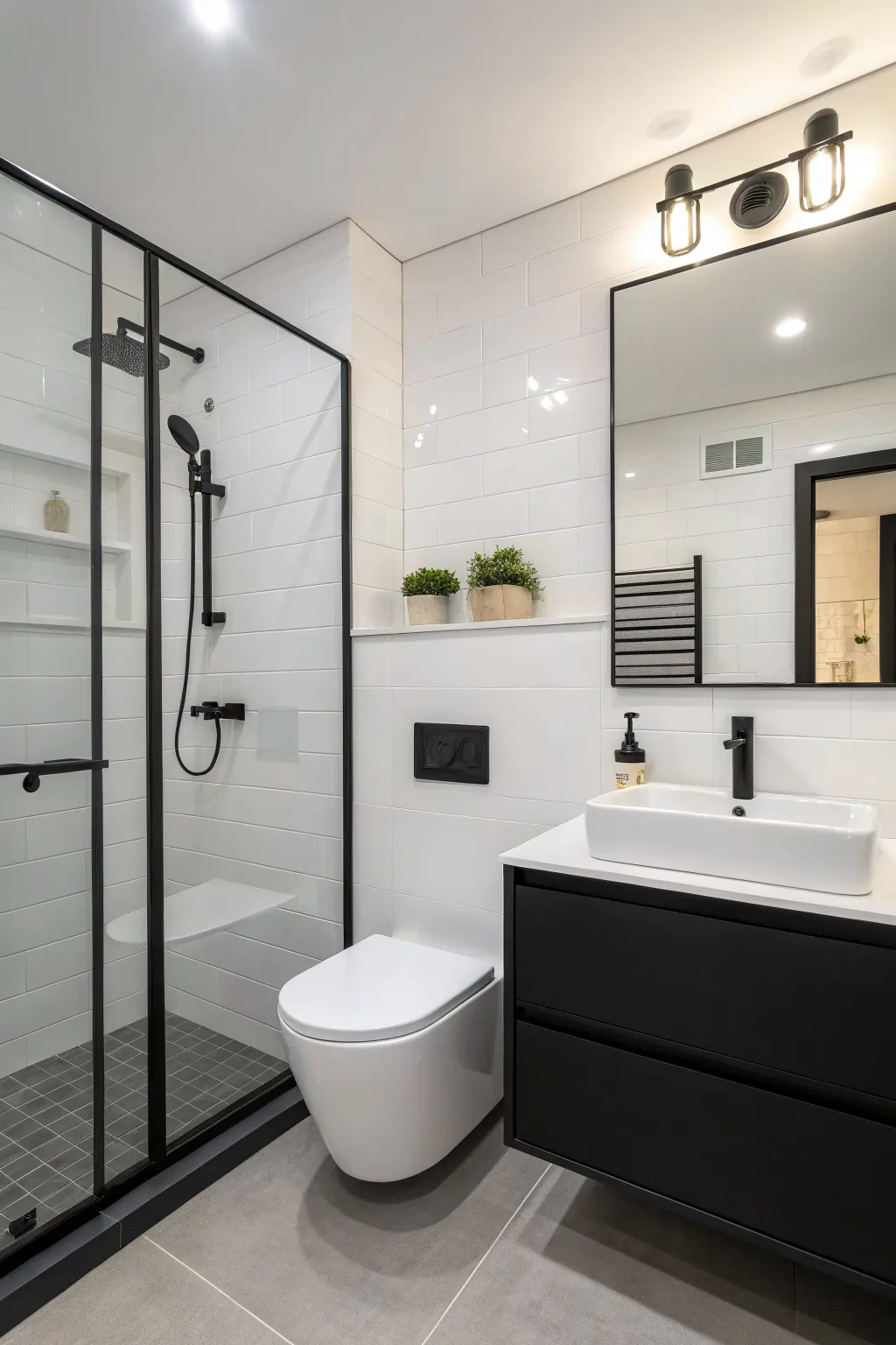 • Monochrome Doorway Trimming: Chic doorway trimming in monochrome introduces a sophisticated detail to your bathroom design.