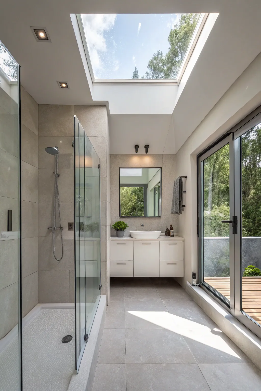 A skylight poised above the shower delivers unfiltered light without sacrificing privacy. I’ve put this to use in designs where wall space is at a premium yet light is still crucial.